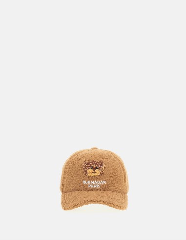 Gorro de piel de oveja ecológica estilo béisbol con parche de osito y bordado.