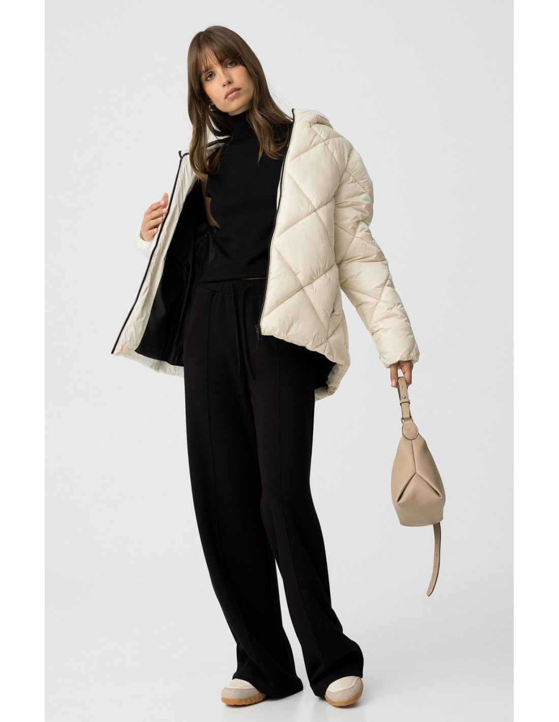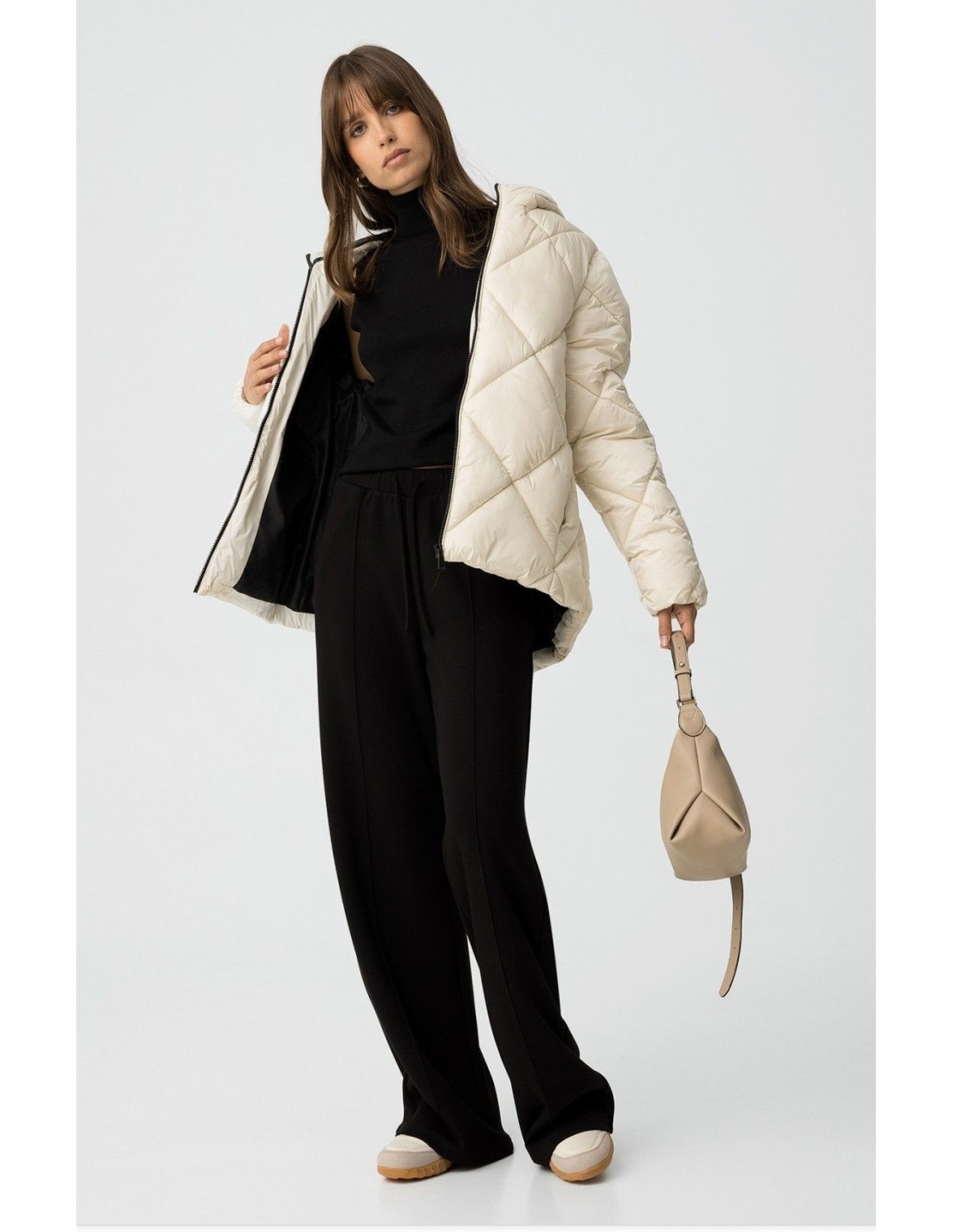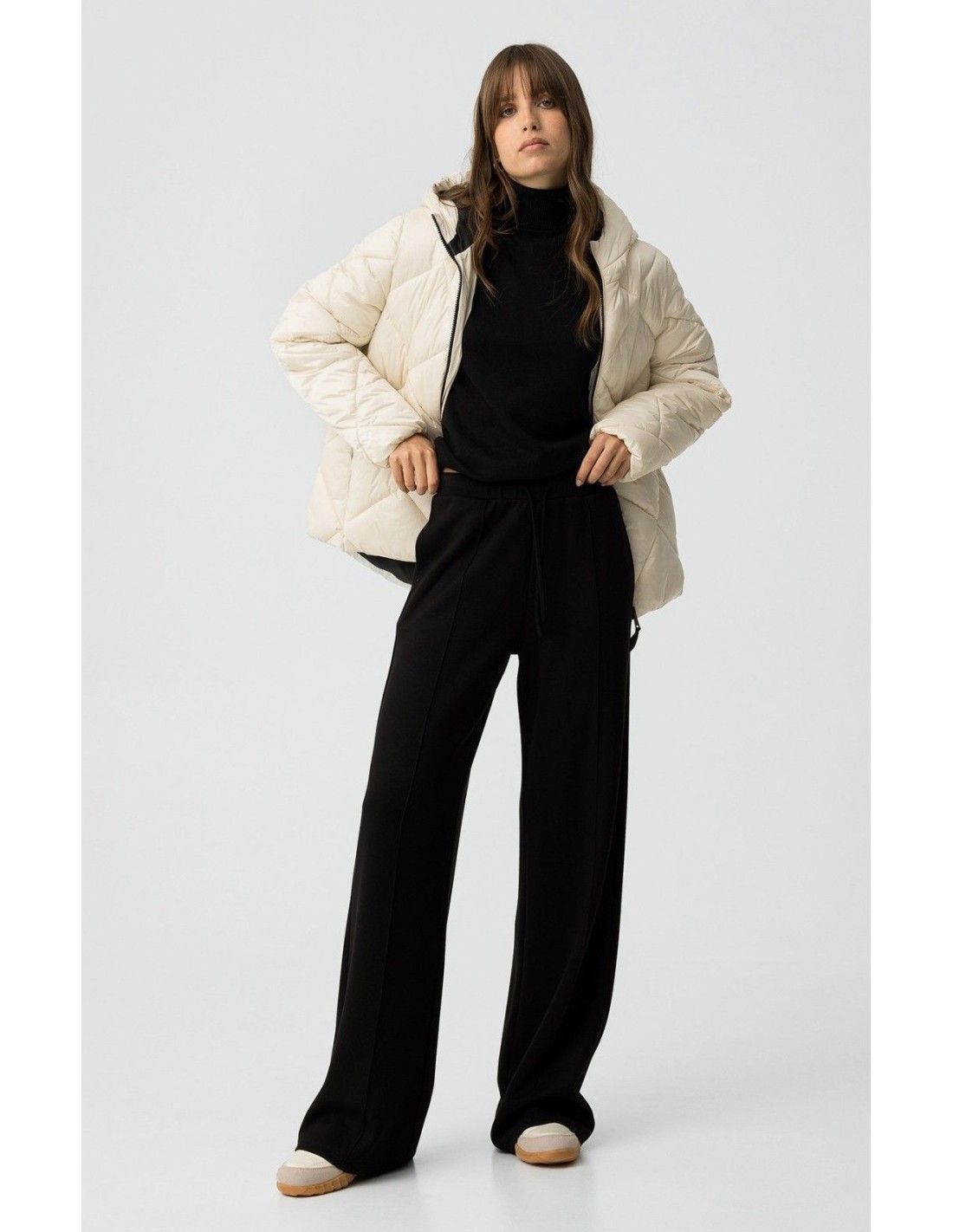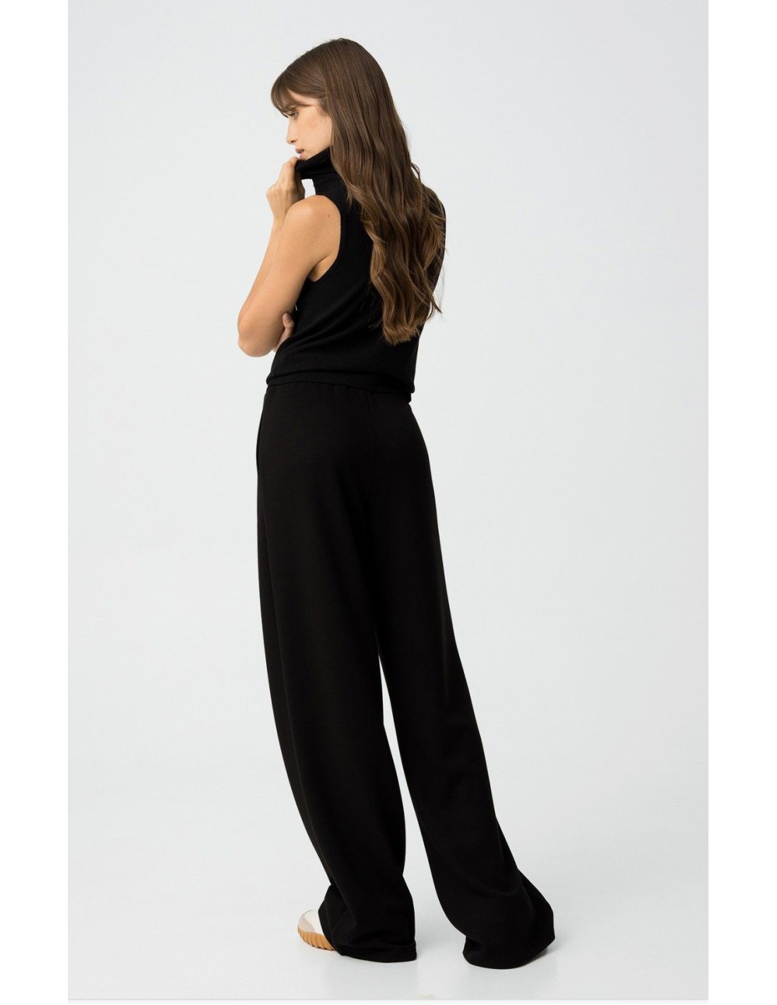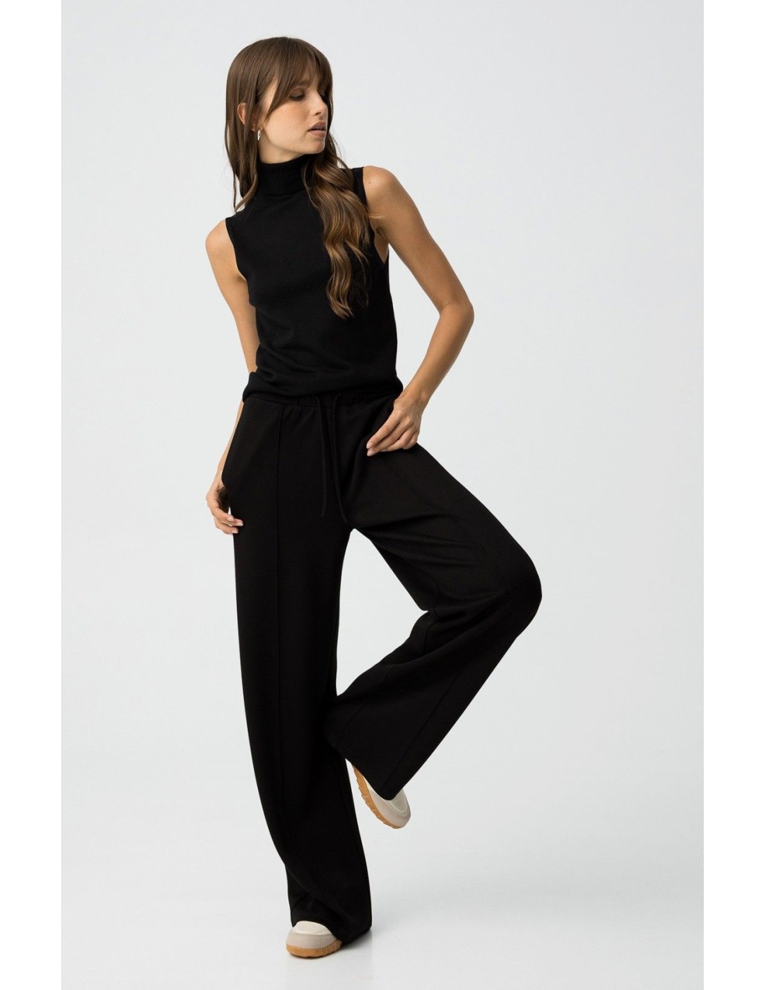 Pantalones de punto de pierna ancha con dos bolsillos y costuras frontales.
