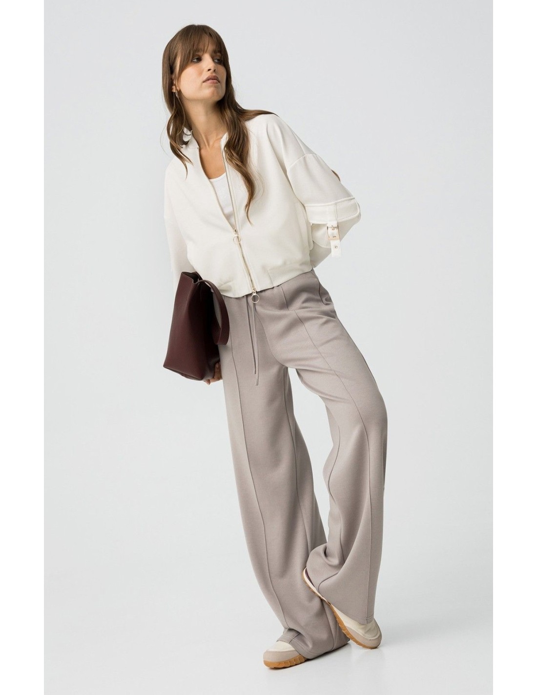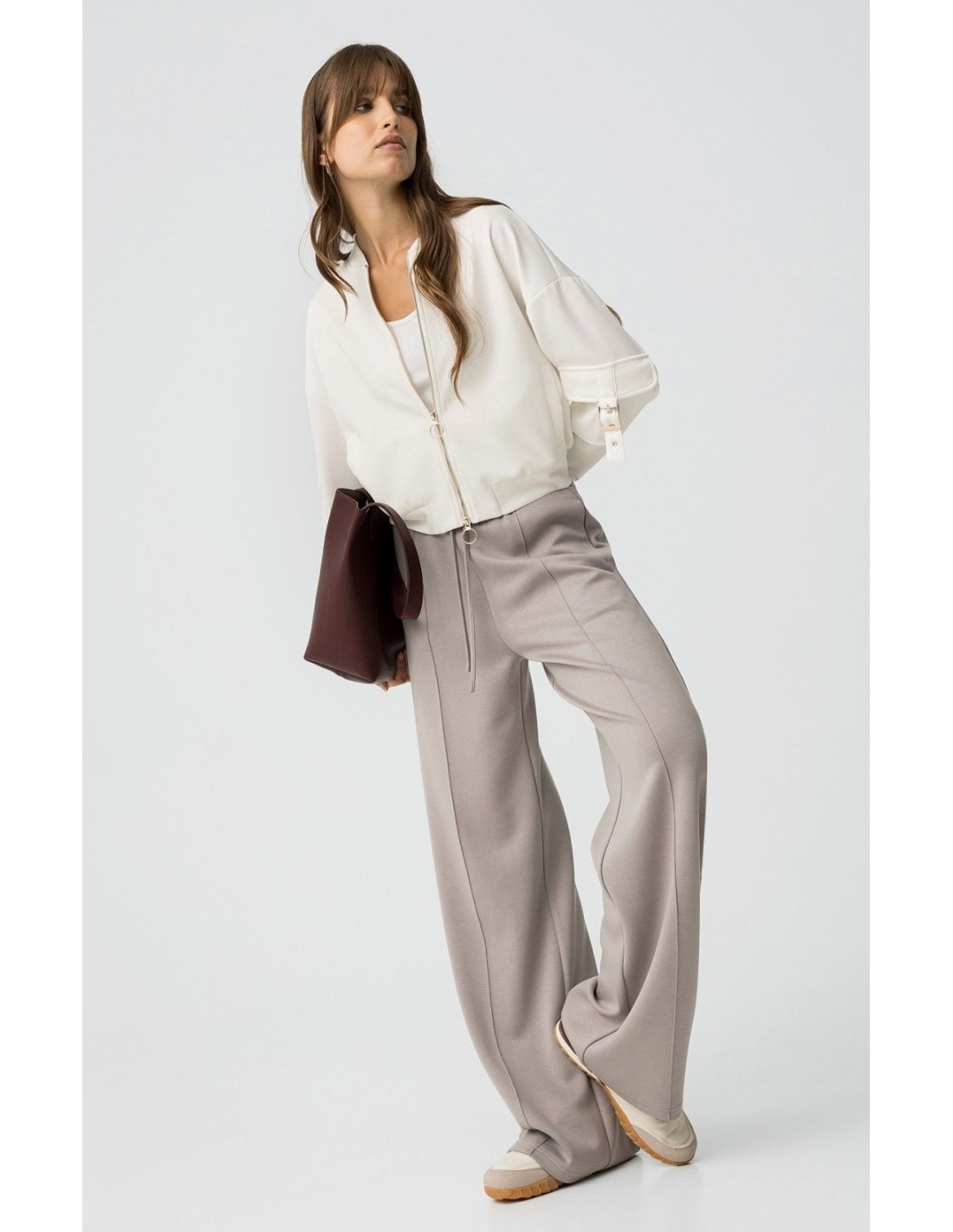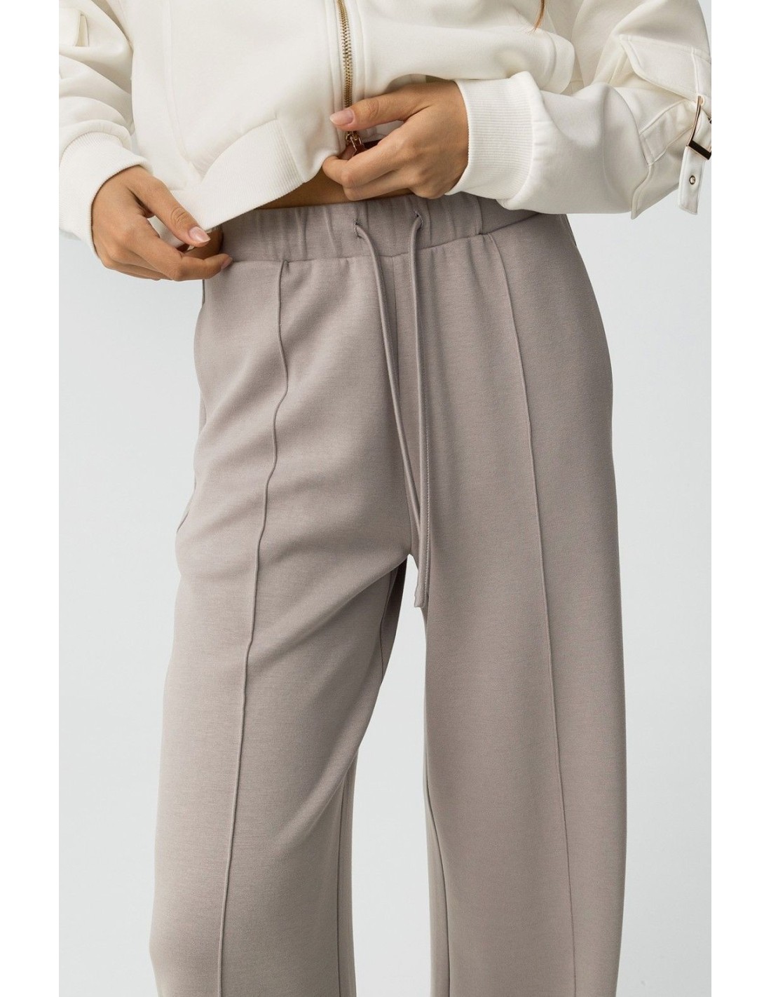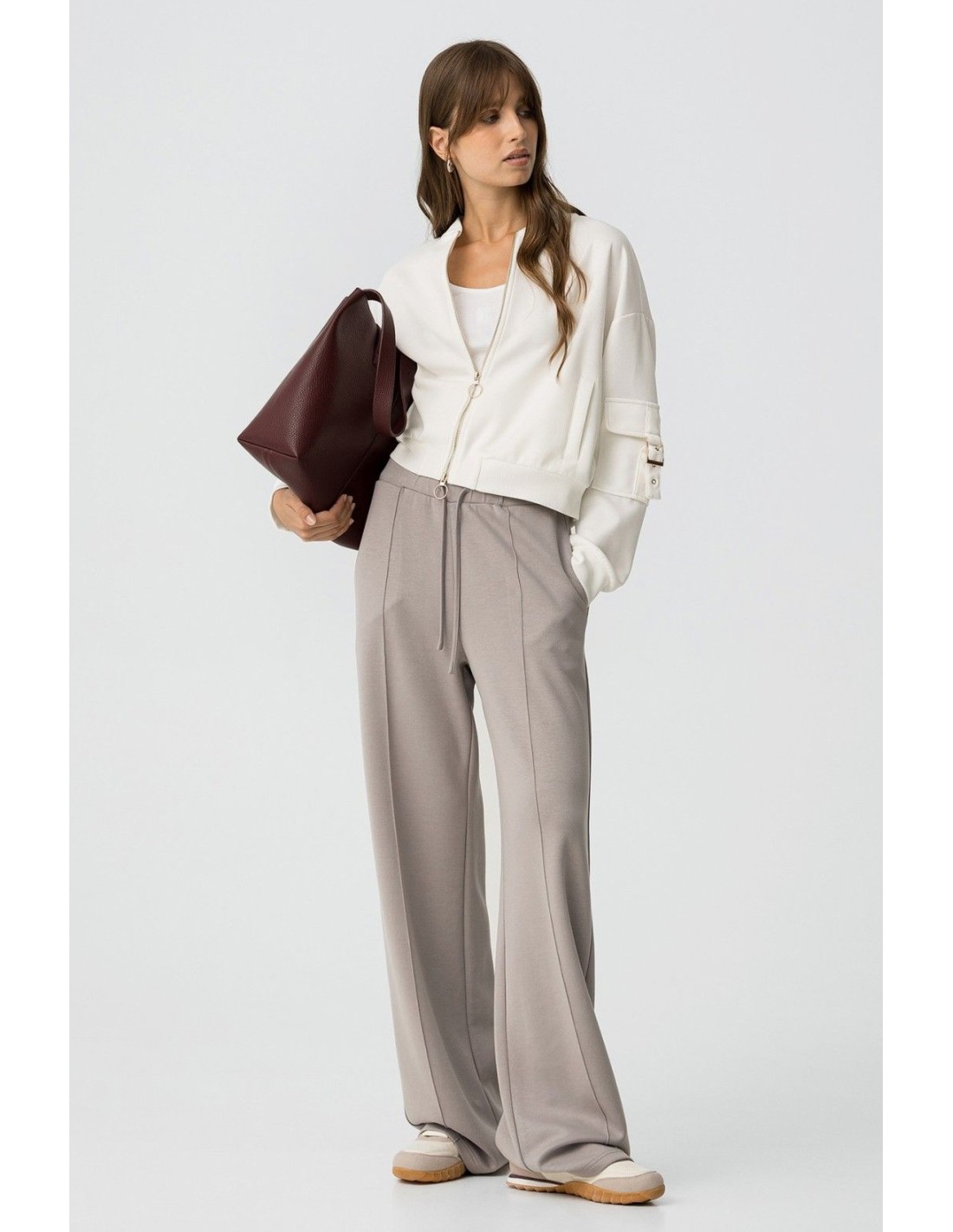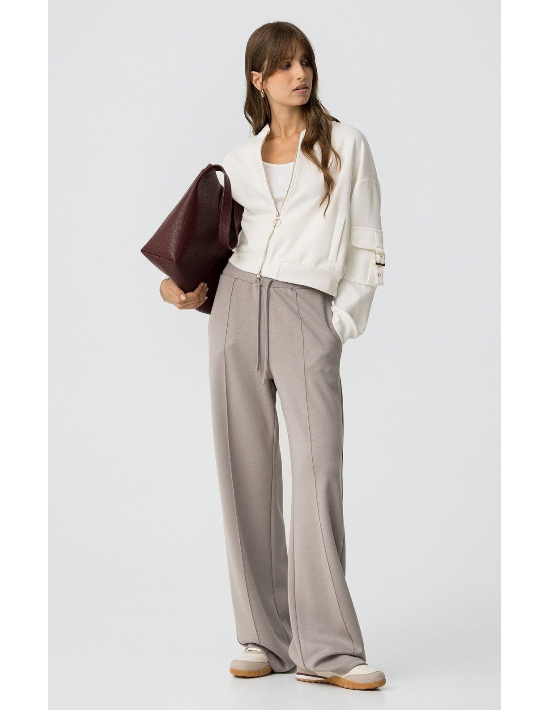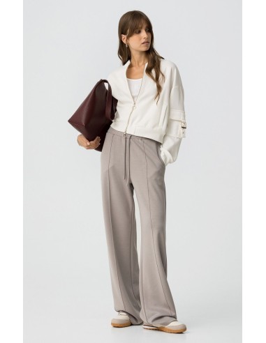 Pantalones de punto de pierna ancha con dos bolsillos y costuras frontales.