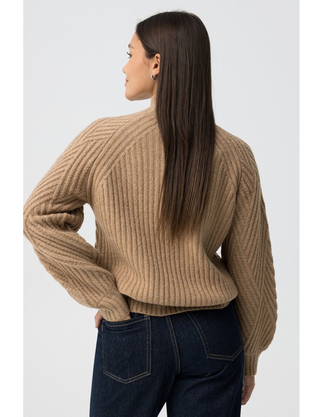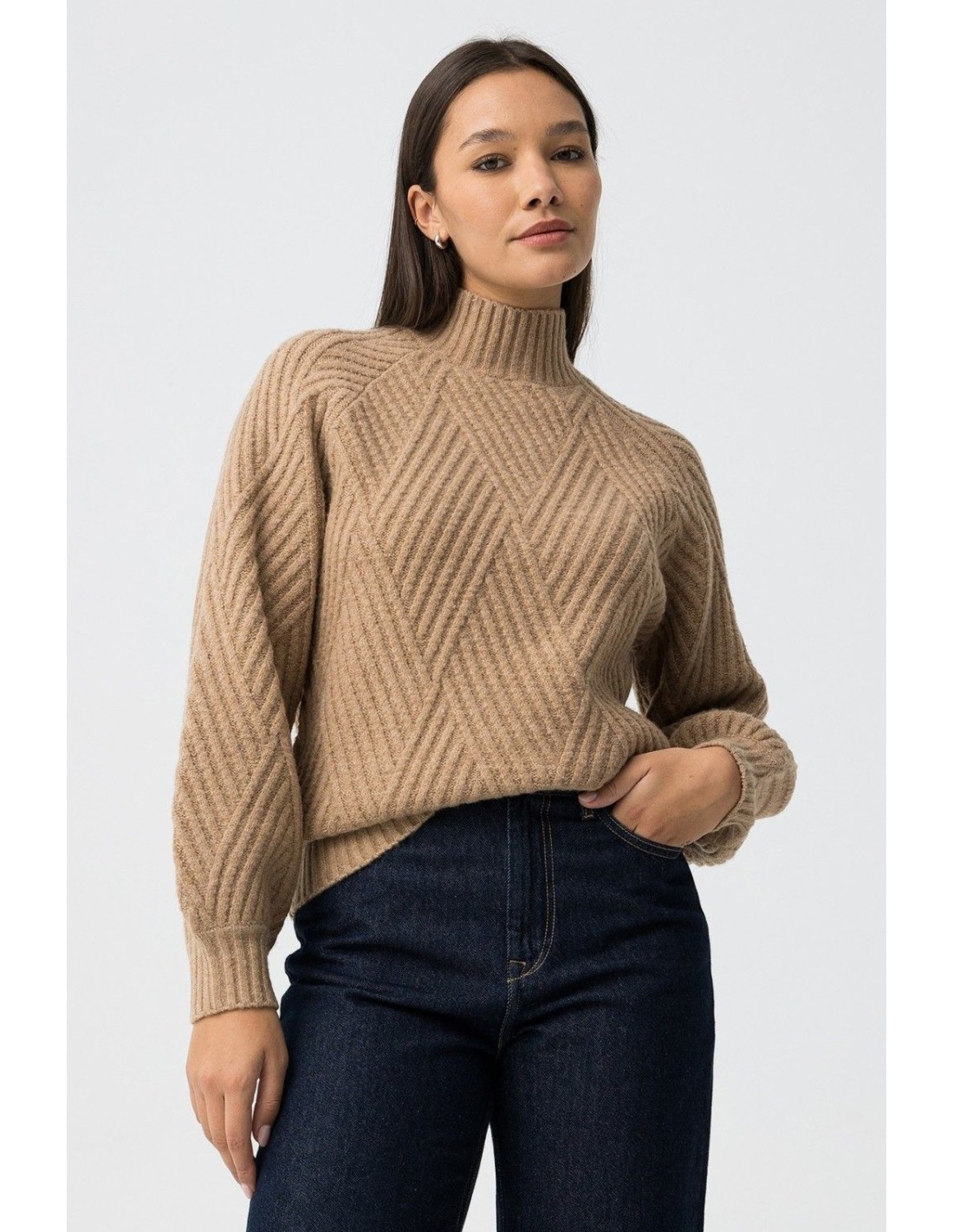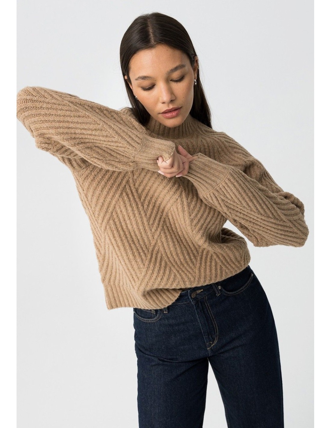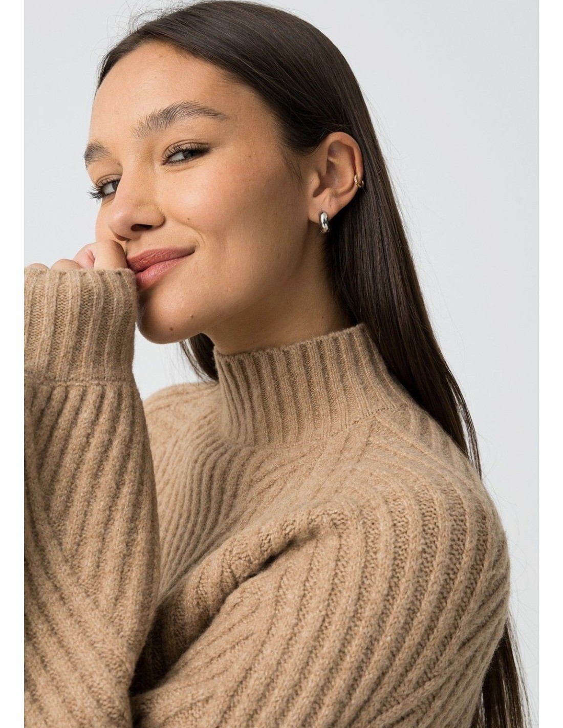 Jersey regular fit de punto canalé, cuello alto y manga larga.