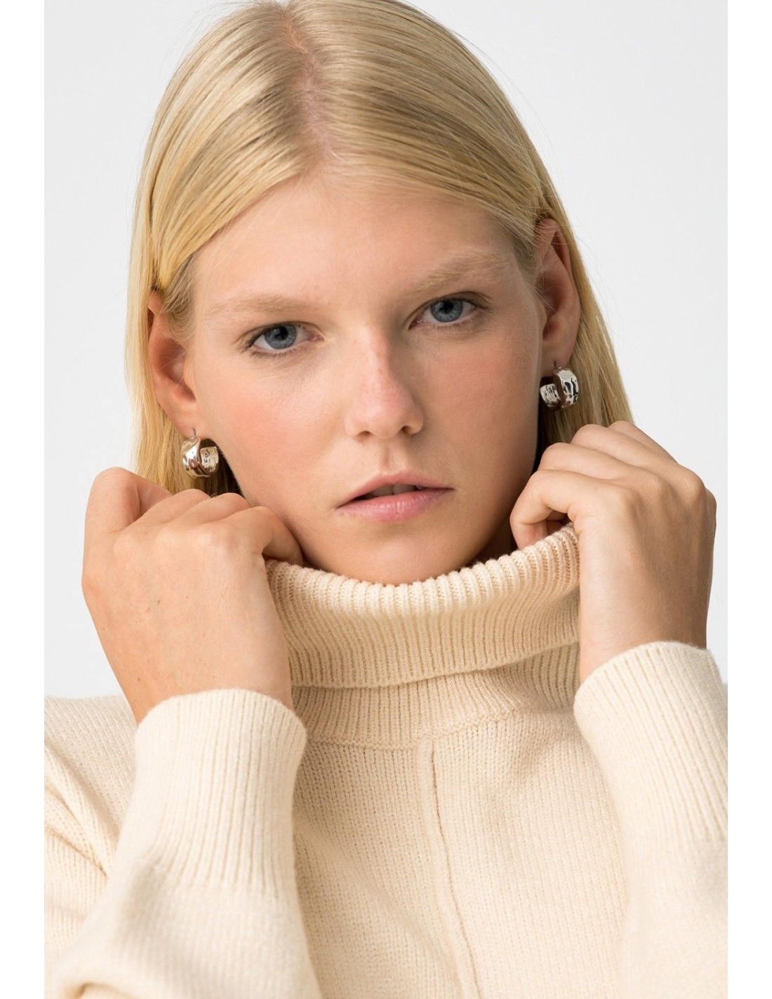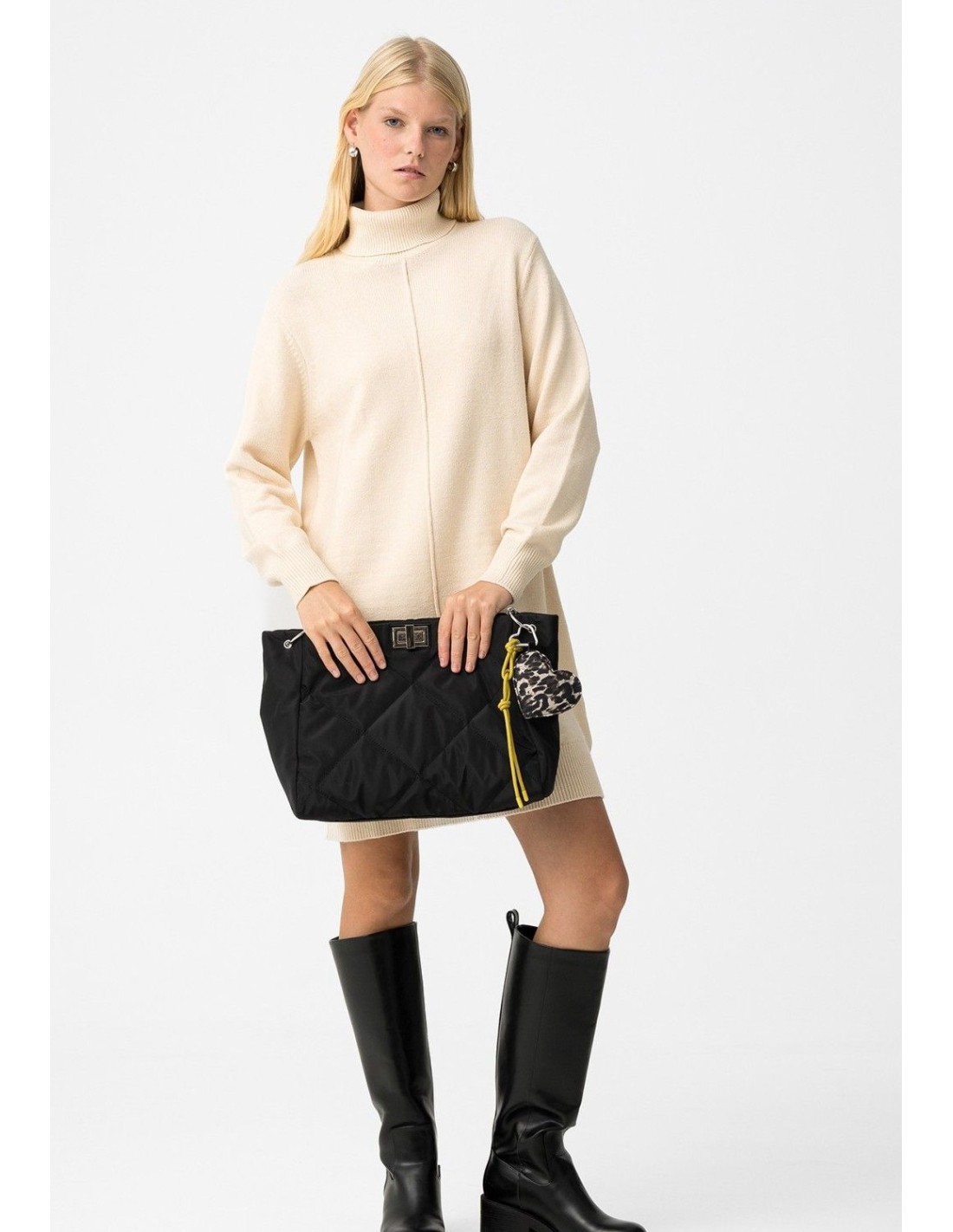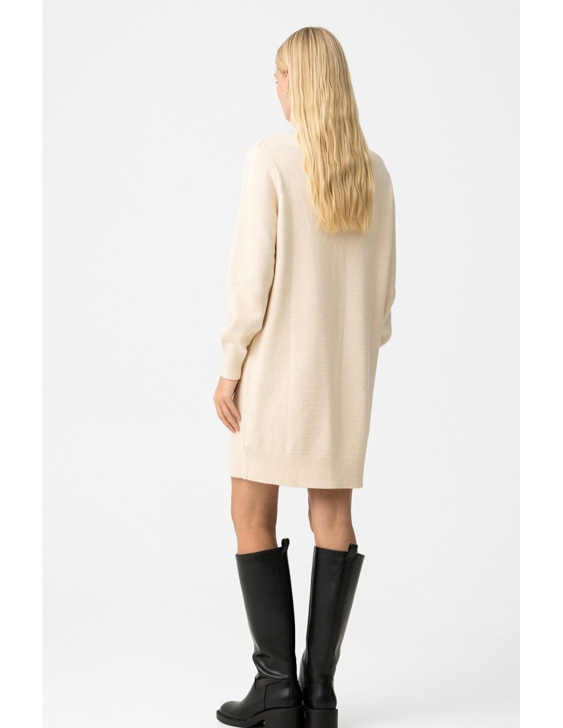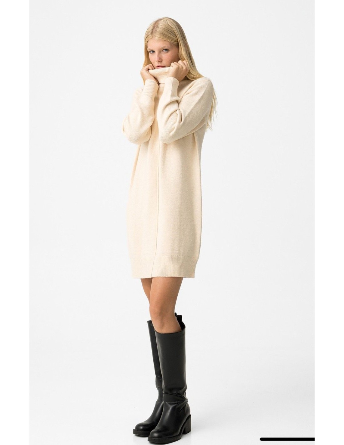 Vestido regular fit de punto, con costura frontal, cuello alto, manga larga y acabados en punto canalé.