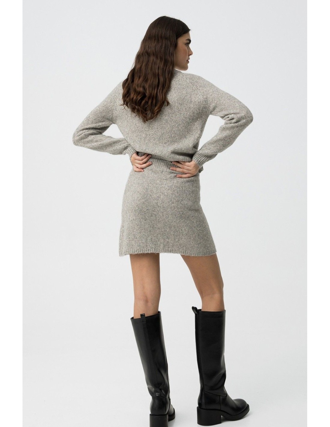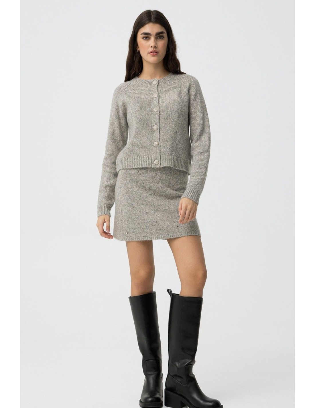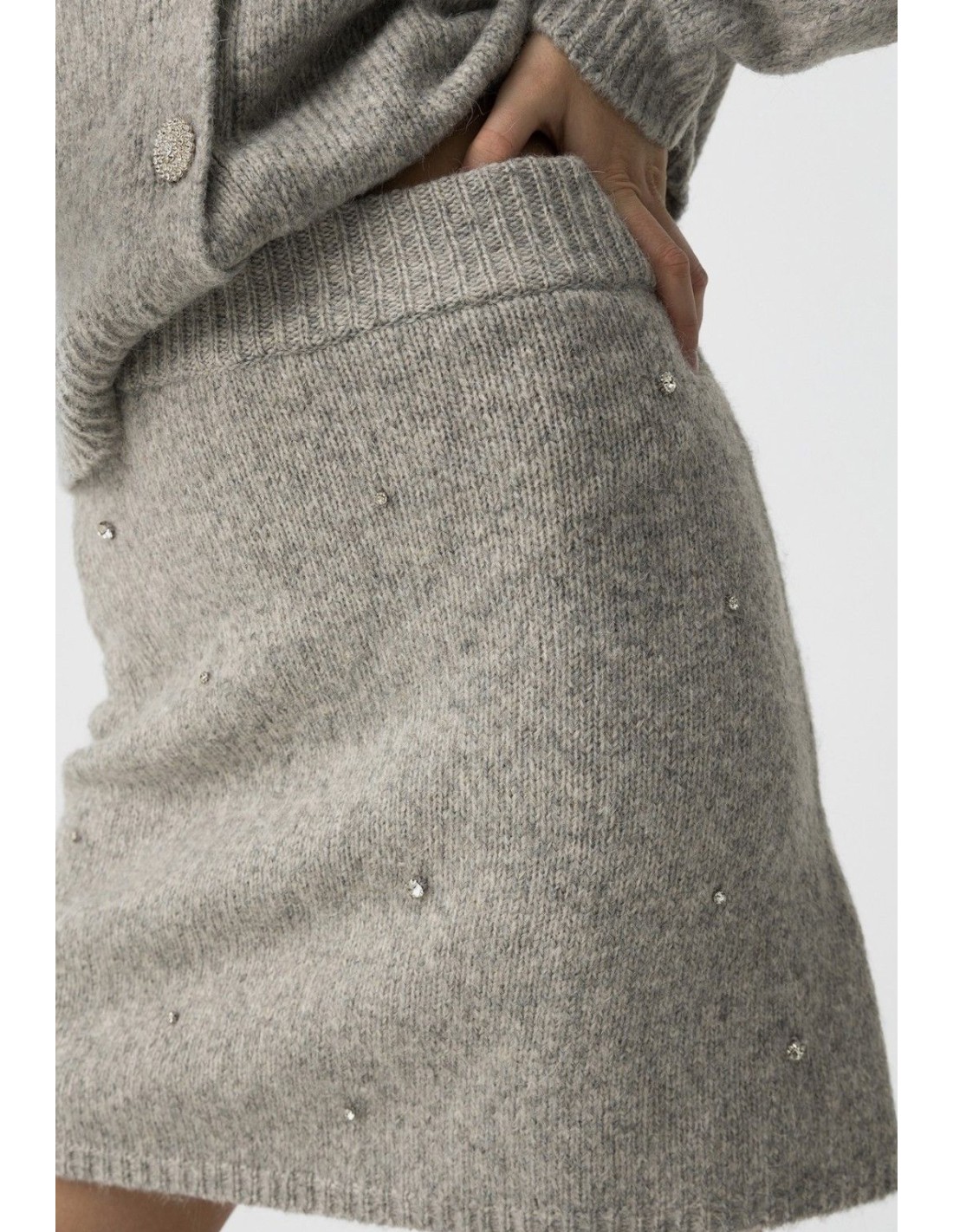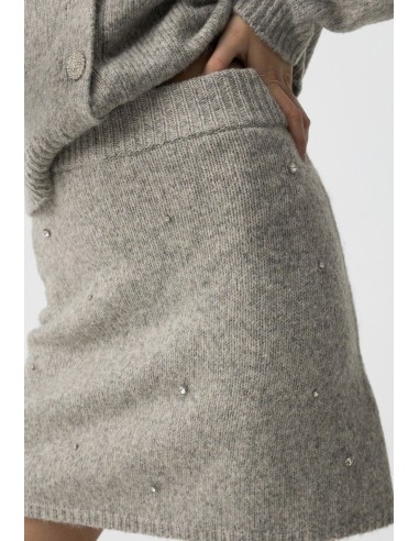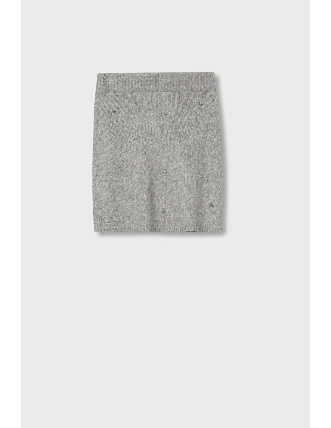 Falda corta de punto tricotado, con aplicaciones de joyas y cintura alta elástica.
