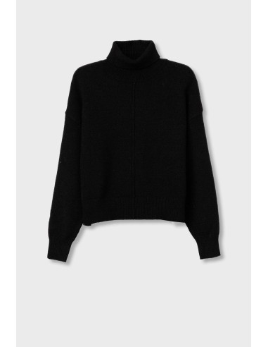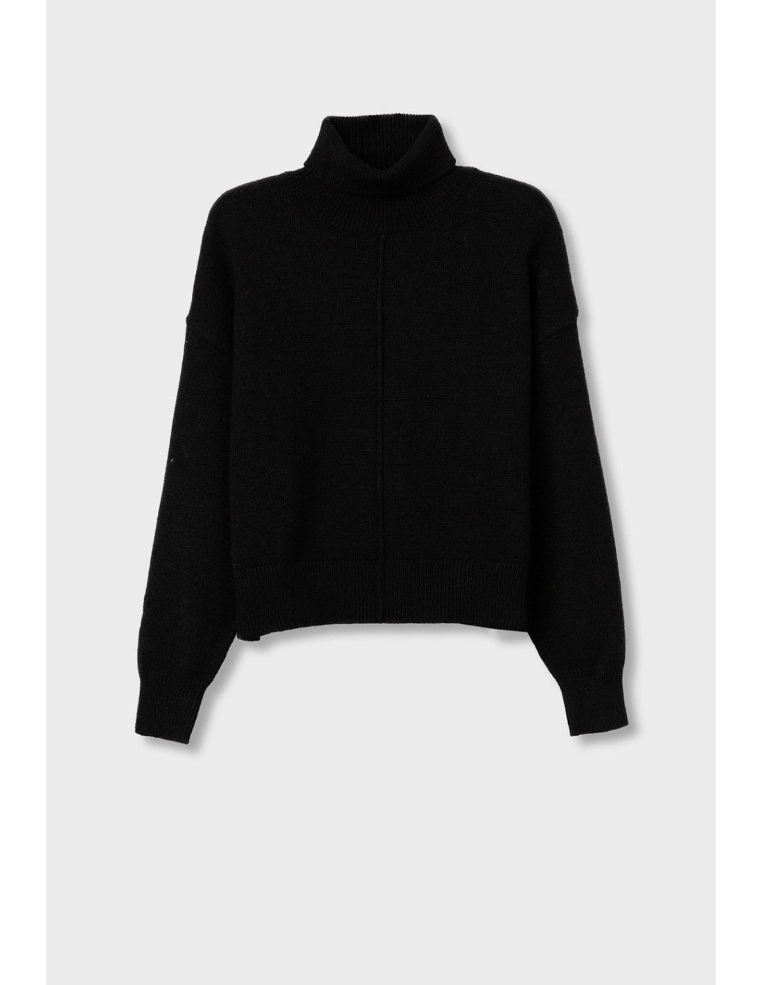 Jersey relaxed fit con costura frontal, cuello alto, manga larga y acabados de canalé.
