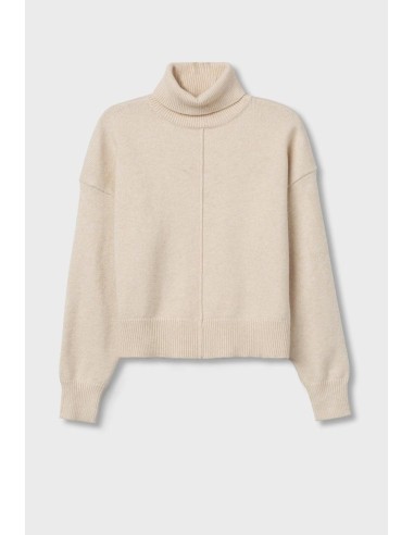 Jersey relaxed fit con costura frontal, cuello alto, manga larga y acabados de canalé.