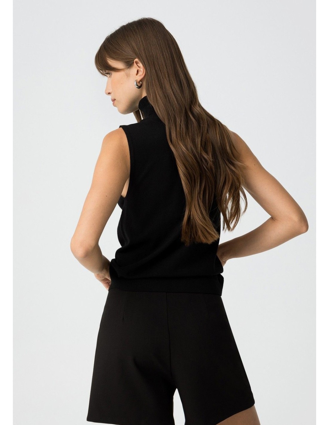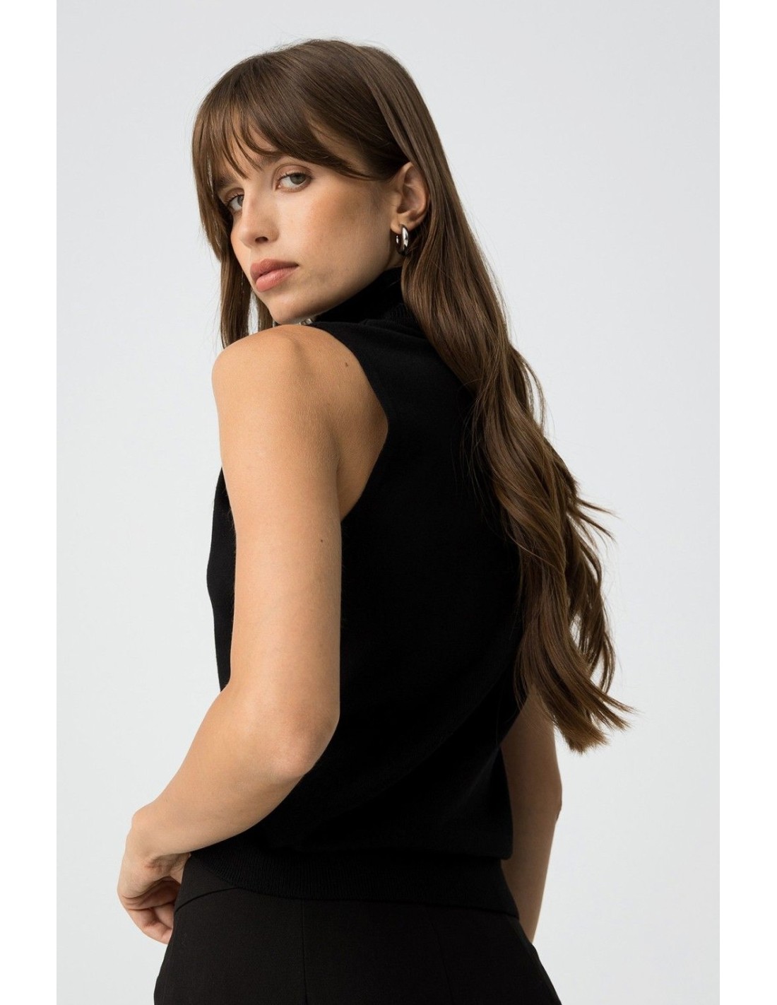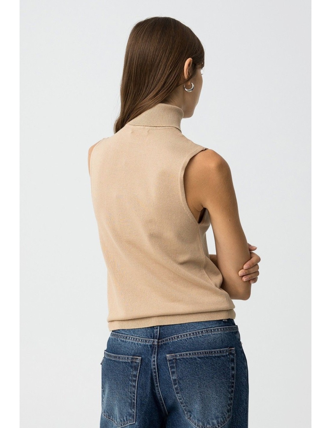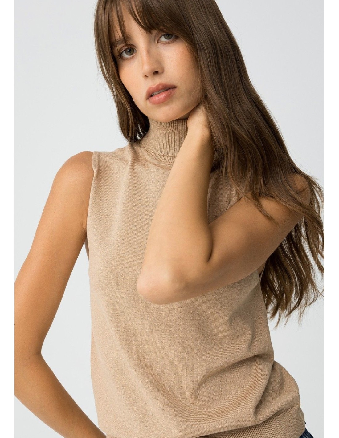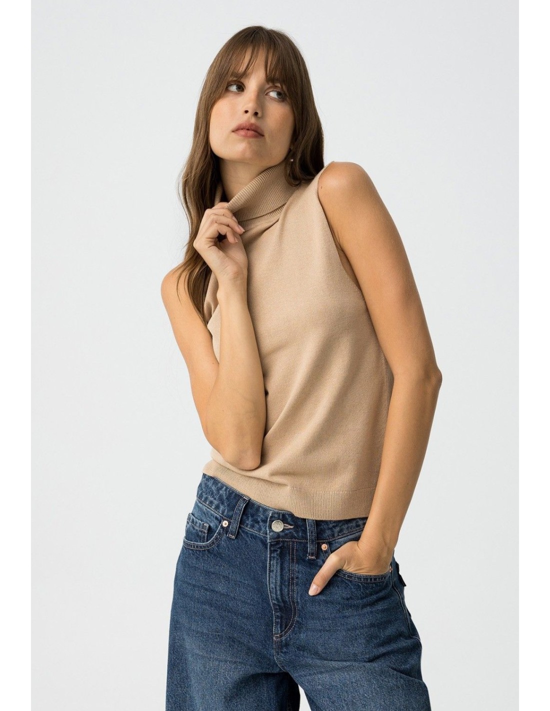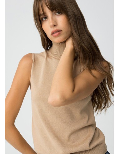 Top slim fit de punto, con cuello alto canalé y sisa.