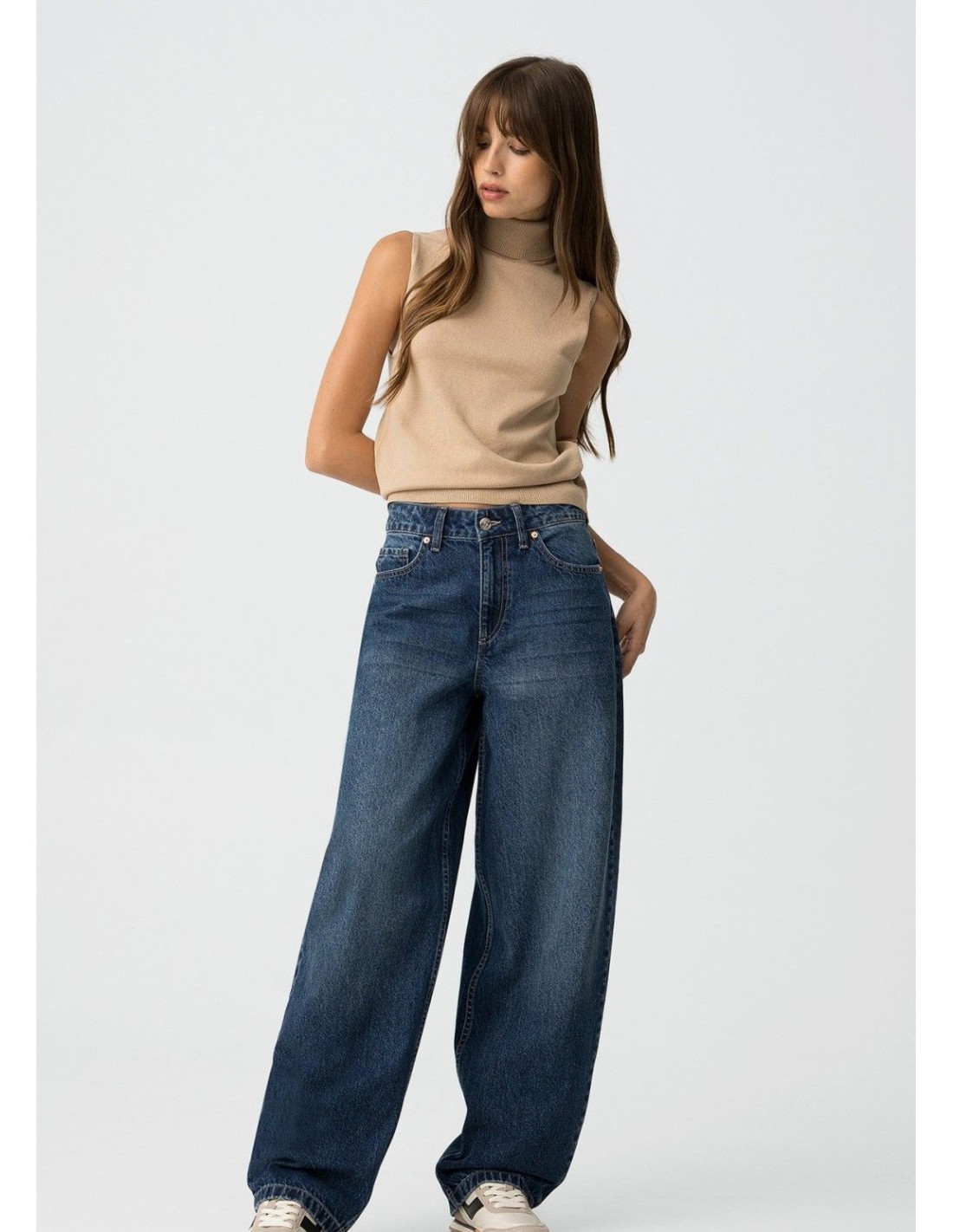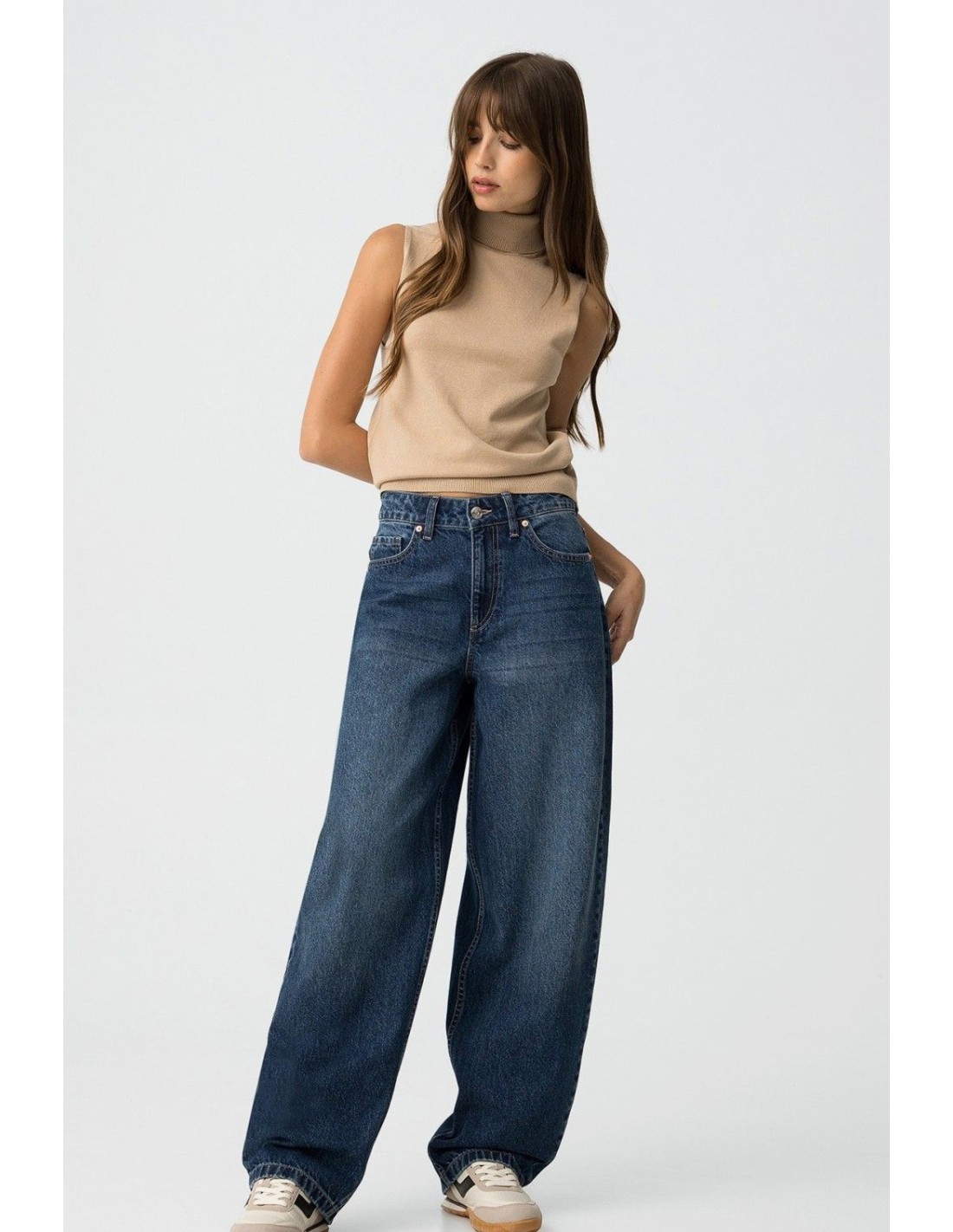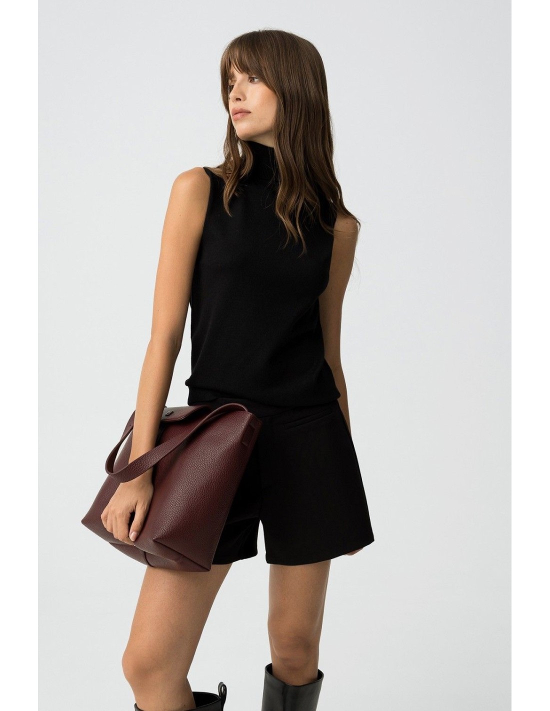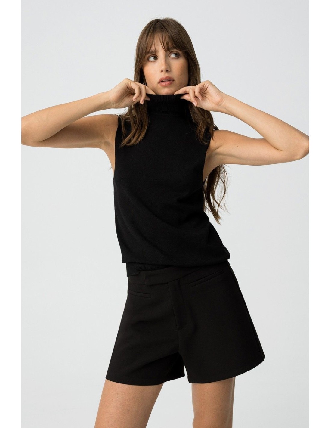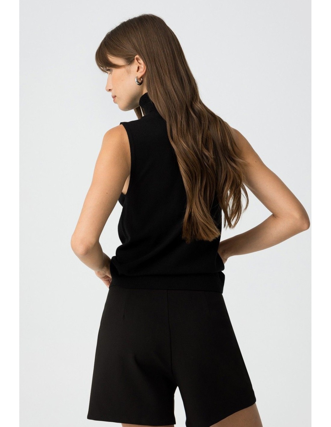 Top slim fit de punto, con cuello alto canalé y sisa.
