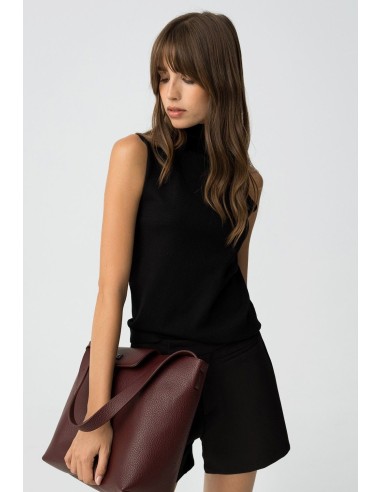 Top slim fit de punto, con cuello alto canalé y sisa.