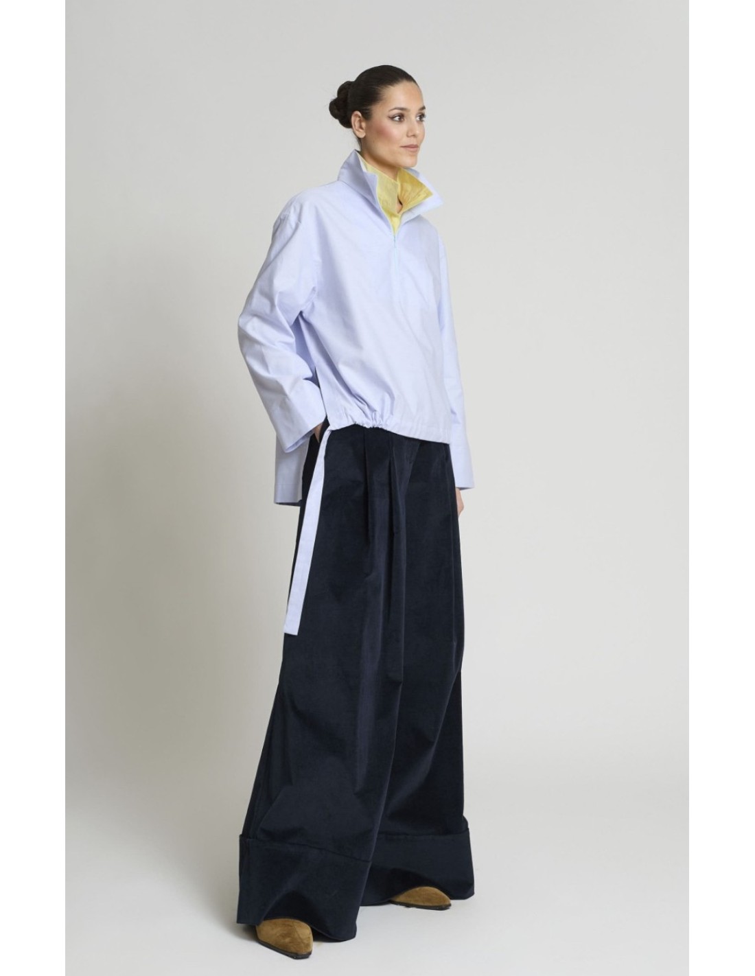 Camisa asimétrica combinada con doble cuello extraíble en color amarillo, ajustable parte delantera.