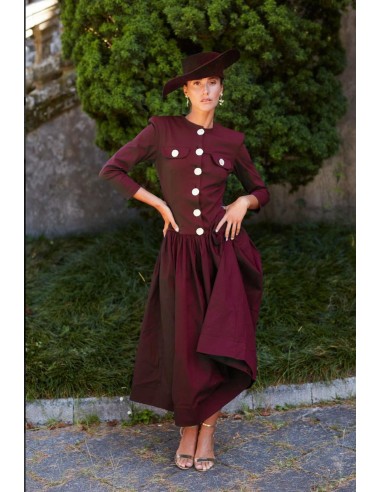 Aporta un aire sofisticado y atemporal a tu look con este vestido midi burdeos, diseñado con botones joya en contraste que realzan su estilo único. Su parte superior entallada con cuello redondo y mangas francesas aporta elegancia, mientras la falda con volumen sutil crea un movimiento delicado y favorecedor. Ideal para bodas de día, eventos de otoño o celebraciones con dress code especial, es una prenda versátil y chic para la invitada que quiere destacar sin renunciar a la comodidad.