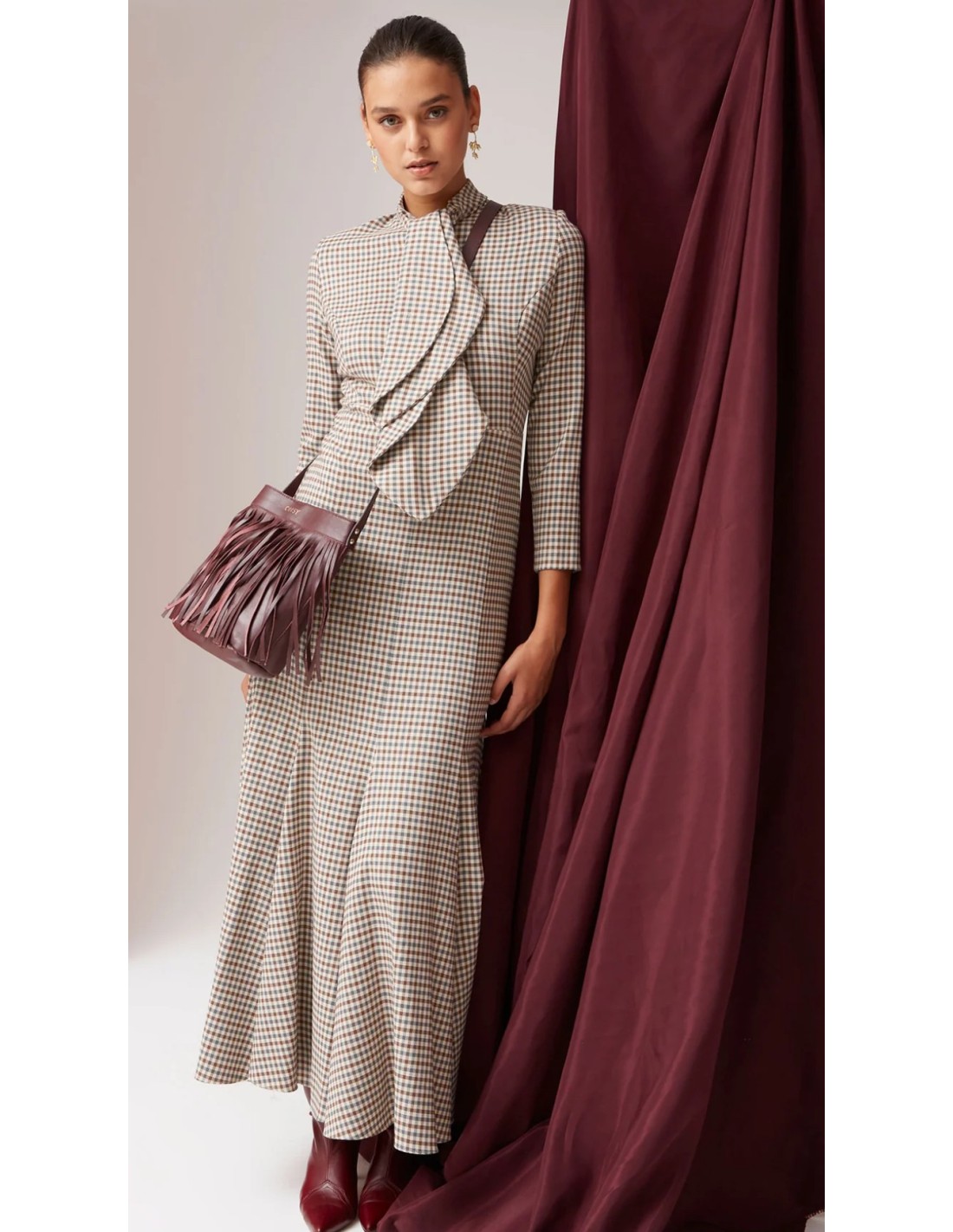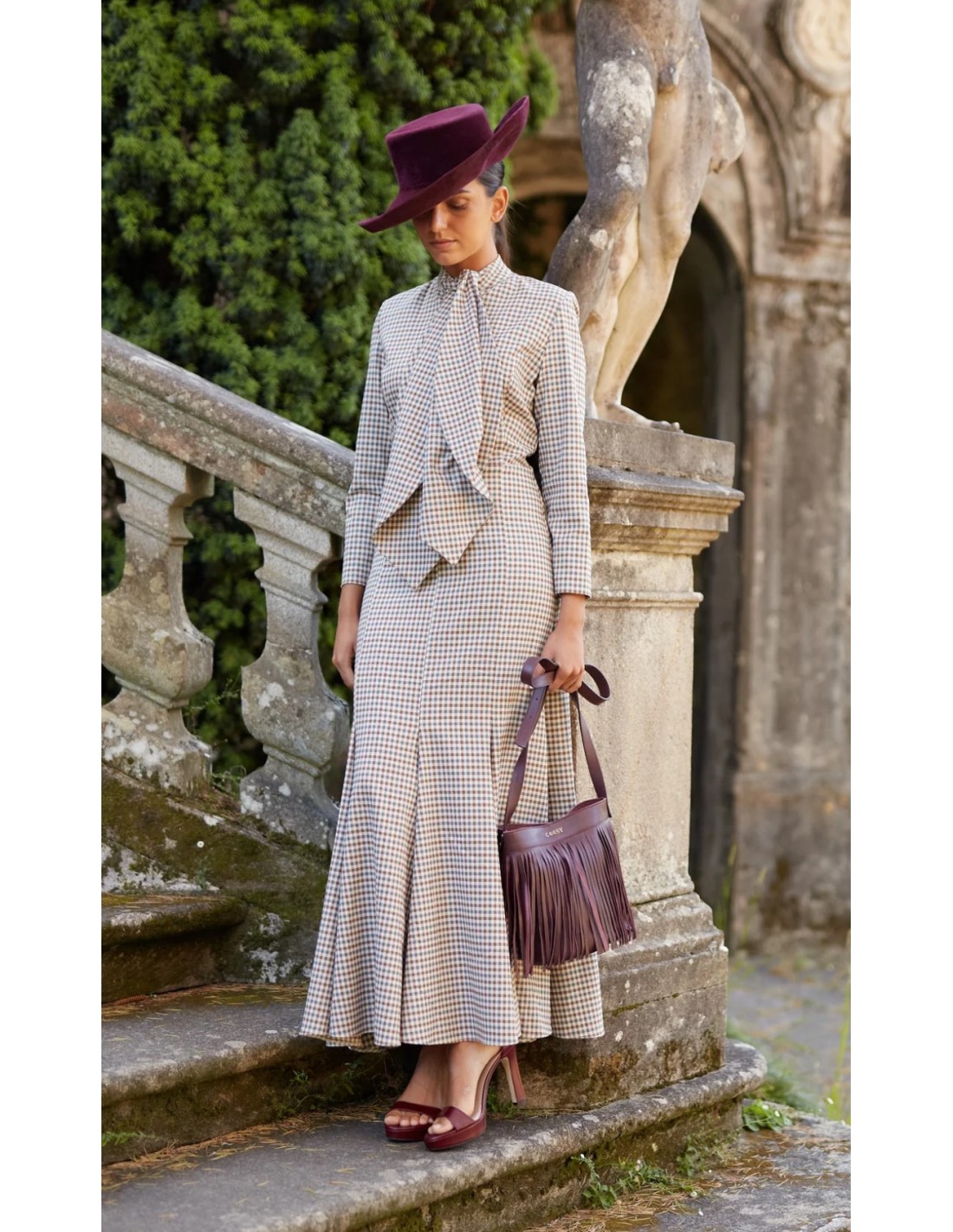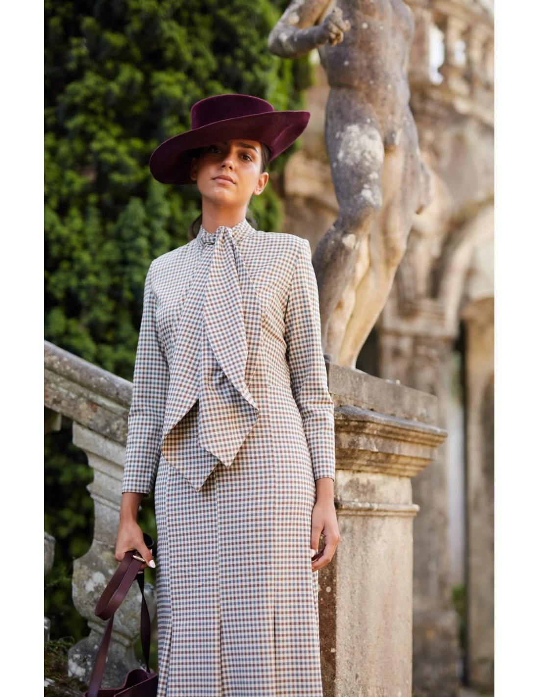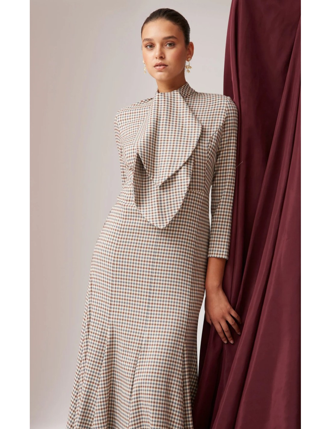 El Vestido Ariana es una prenda que combina estilo y sofisticación con un diseño único. Su tejido de cuadros vichy, de corte largo y fluido, realza la silueta con un aire femenino y distinguido. El detalle de volante frontal asimétrico aporta movimiento y originalidad, mientras que el cuello cerrado y las mangas largas lo convierten en la elección perfecta para entretiempo y temporadas más frescas.