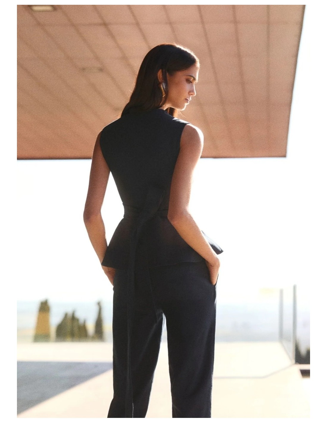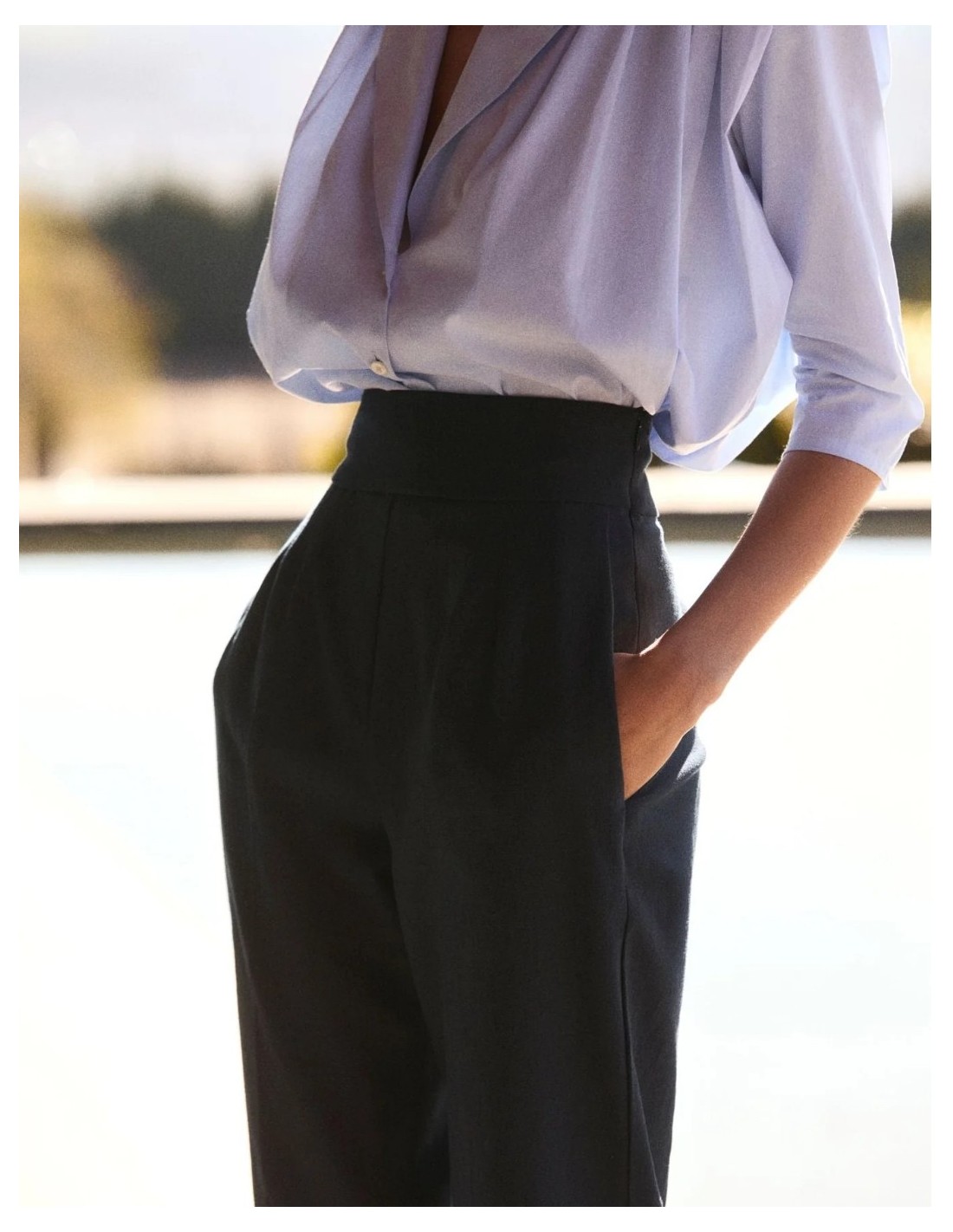 Pantalón de tiro alto con cinturilla en color azul marino.