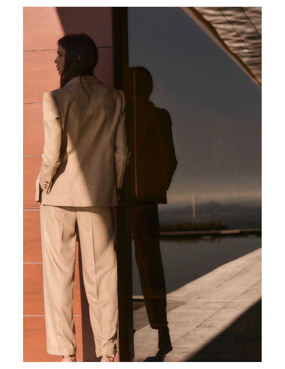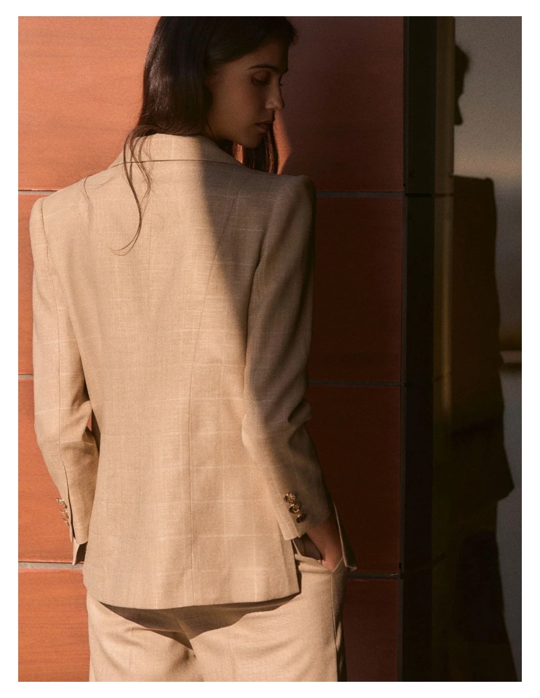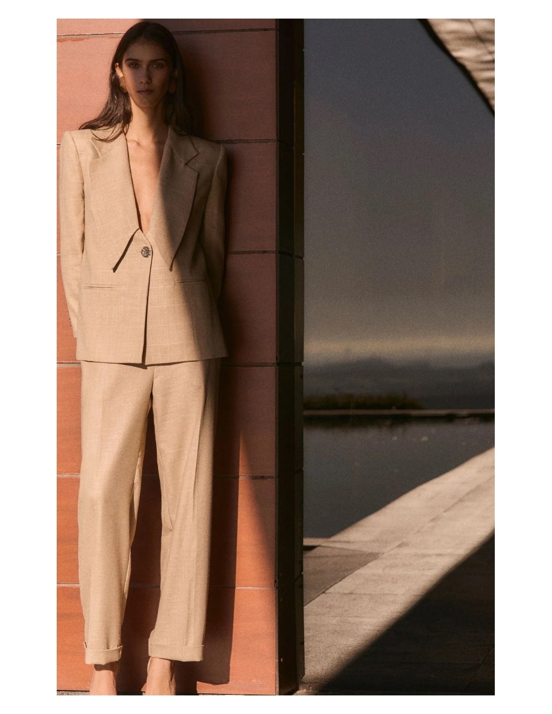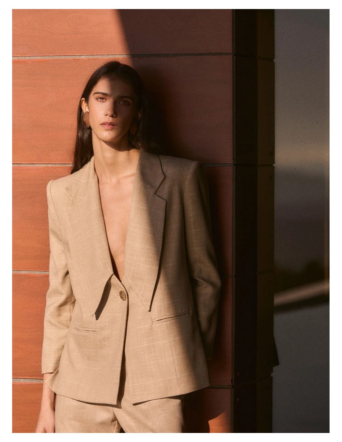 Chaqueta en color beige con solapa.