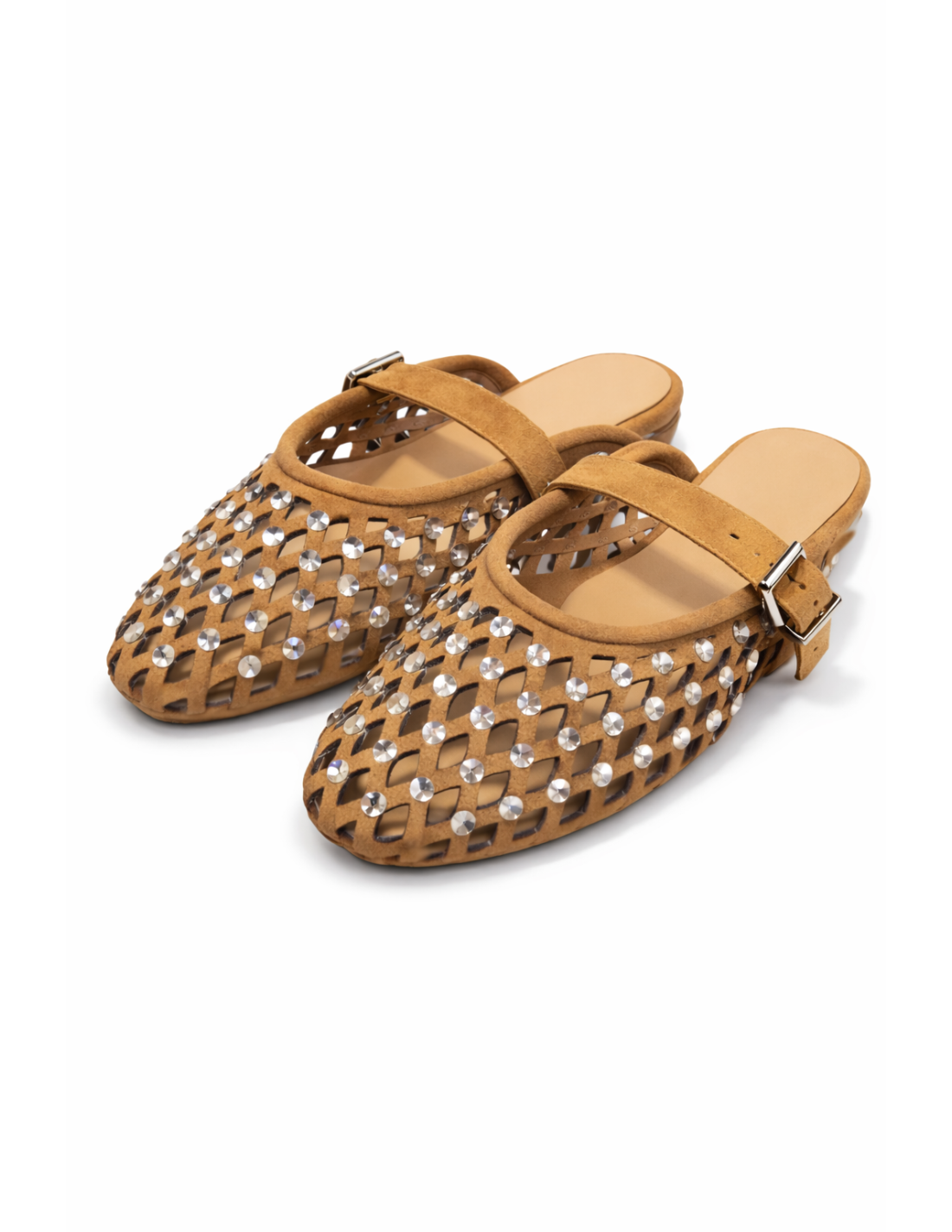 Elegante zueco de diseño trenzado con detalles de strass que aportan un toque sofisticado y brillante.