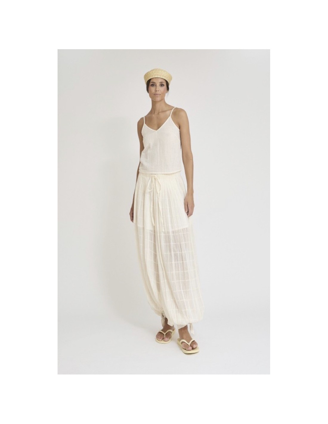 Pantalón baggy de algodón 100% con cintura elástica y cordón ajustable.