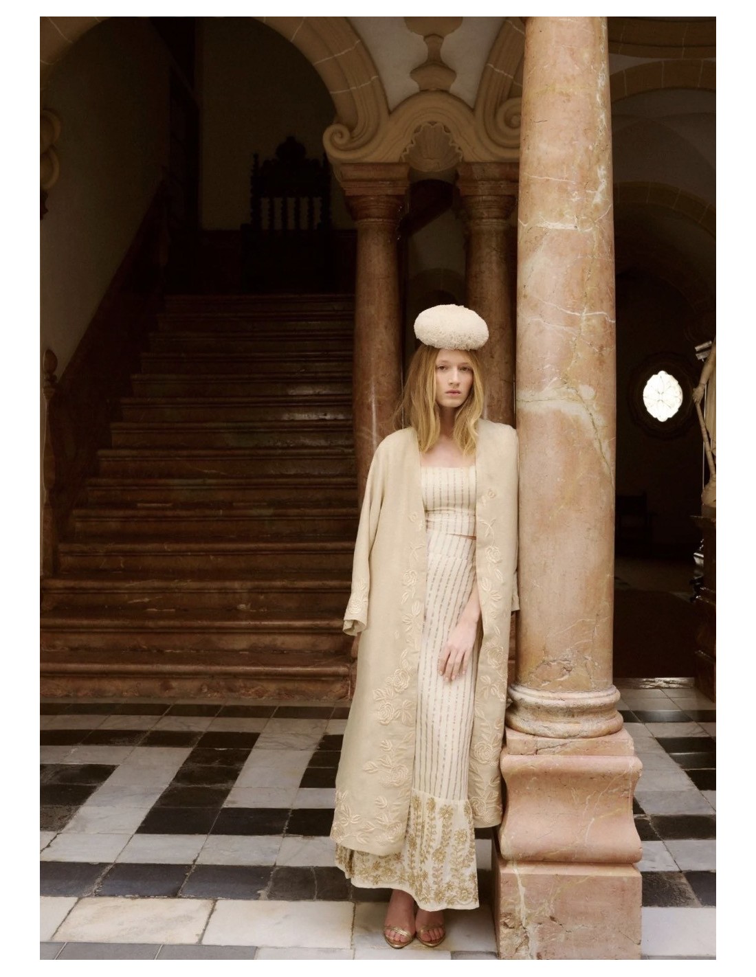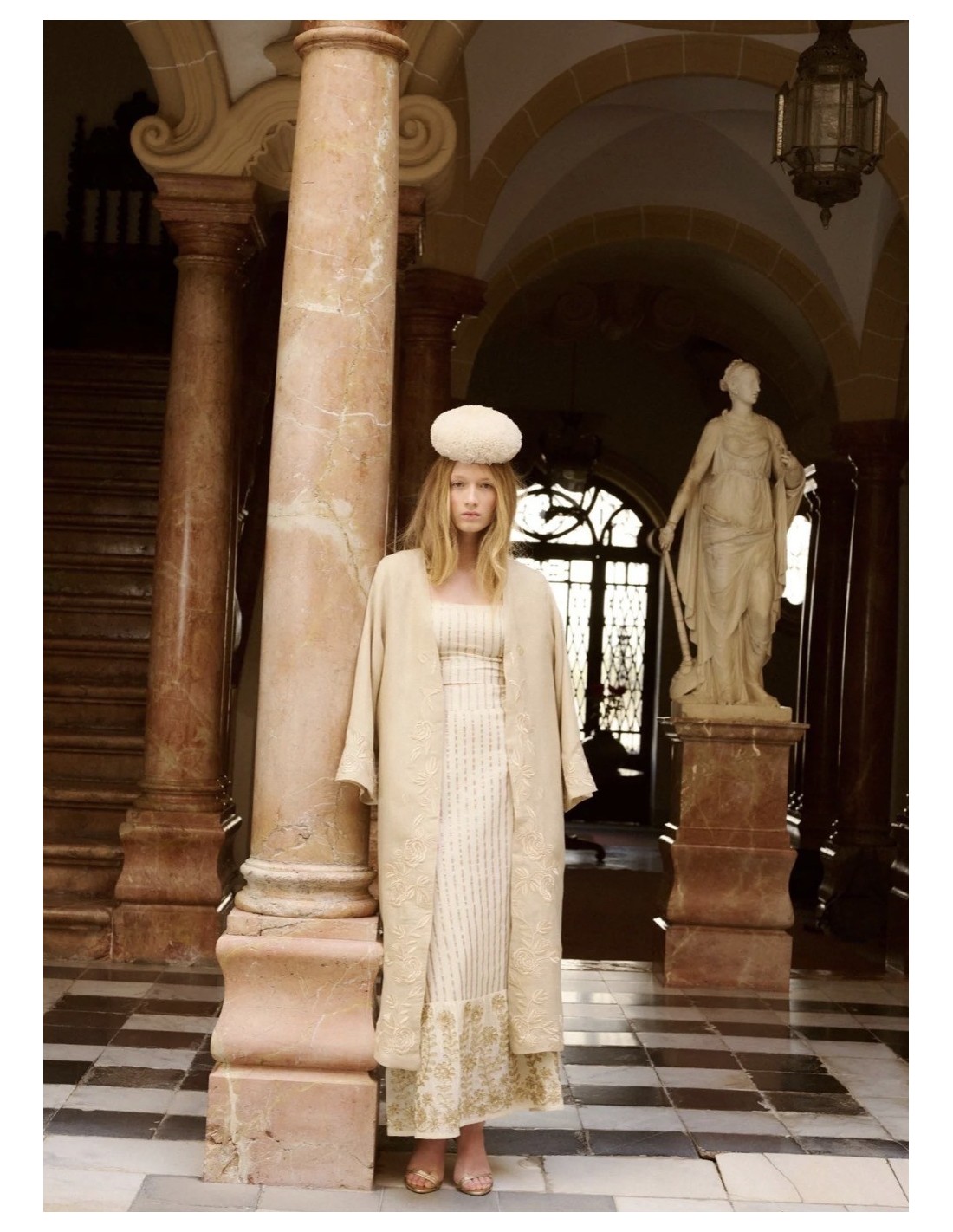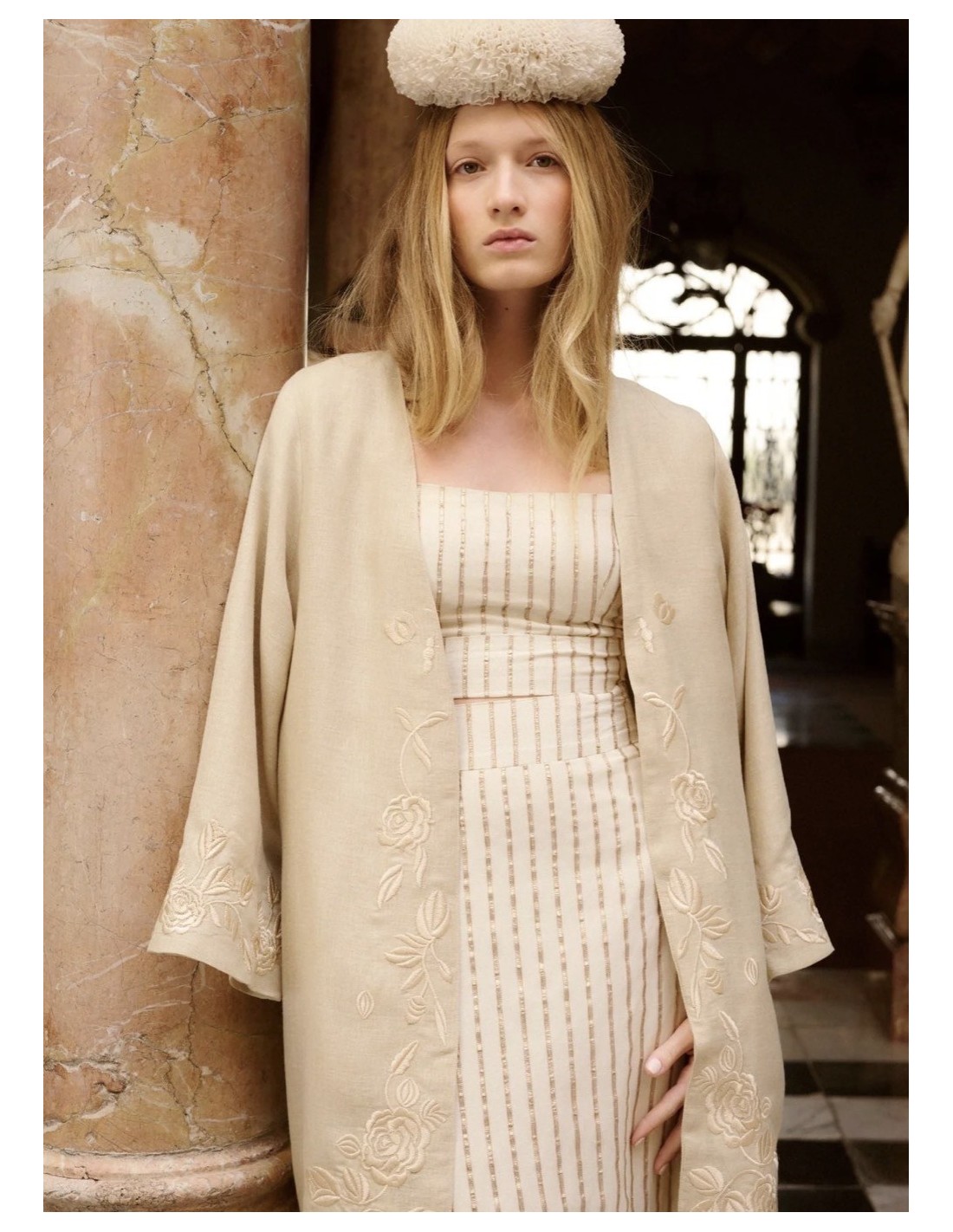 Kaftan en color beige con bordados en el bajo a tono.