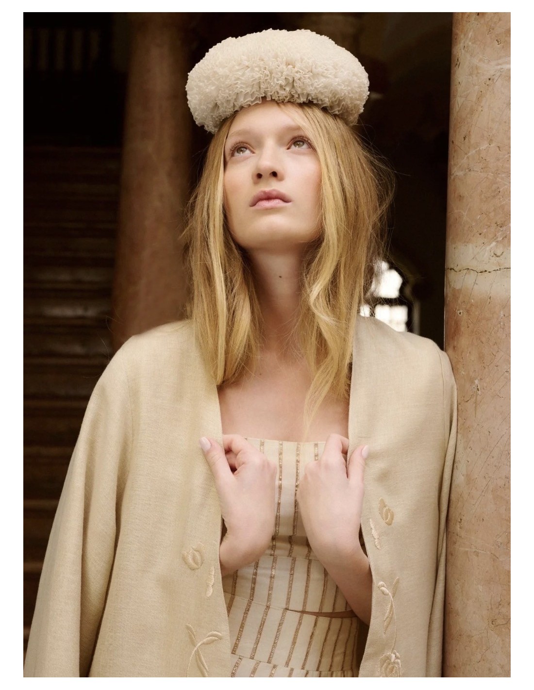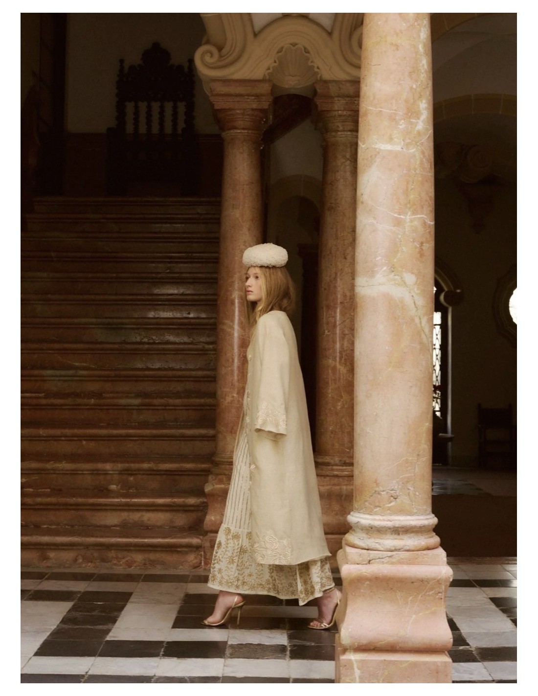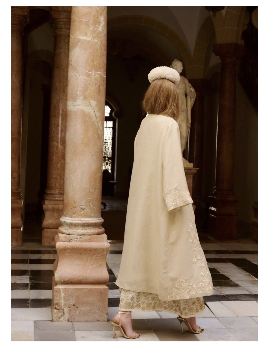 Kaftan en color beige con bordados en el bajo a tono.
